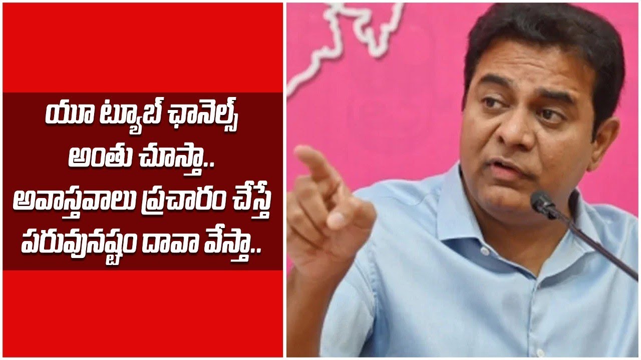 యూ ట్యూబ్ ఛానల్స్ అంతు చూస్తా.. పవరువునష్టం దావా వేస్తానన్నకేటీఆర్